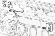 拆下陽性接頭上的蓋,然后將回油軟管安裝到回油殼體上。擰緊軟管。扭矩值: 45 n.m [33 ft-lb]