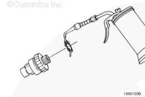將新康明斯傳感器裝入發(fā)動(dòng)機(jī)缸體中。使用加長套筒(零件號 3823843)擰緊傳感器。扭矩值:  14  n.m  [124 in-lb]