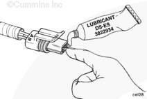 僅使用康明斯推薦的零件號為 3822934 的 DS-ES 潤滑劑。接頭內(nèi)粘有機(jī)油或潤滑脂等其它潤滑劑將會(huì)導(dǎo)致 ECM 損壞、發(fā)動(dòng)機(jī)性能下降或接頭觸針過早磨損。