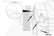 從發(fā)動(dòng)機(jī)線(xiàn)束上拆下全部 P 形夾和線(xiàn)束固定支架,然后拆卸線(xiàn)束。使用一把 4 mm [5/32 in] 六角扳手從 ECM 上斷開(kāi)發(fā)動(dòng)機(jī)線(xiàn)束 Deutsch 接頭。