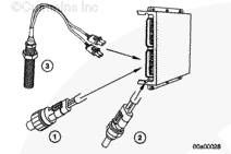 為了閃爍出故障代碼,ECM 必須進(jìn)入診斷模式。使用診斷模式開(kāi)關(guān)或?qū)蓚€(gè)單針診斷模式啟動(dòng)接頭連接在一起,進(jìn)入診斷模式。這些接頭位于飛輪殼上方,靠近發(fā)動(dòng)機(jī)轉(zhuǎn)速傳感器。ECM 正常工作期間,這兩個(gè)接頭斷開(kāi)(開(kāi)路)當(dāng)兩個(gè)接頭連接在一起(短路)時(shí),ECM 處于診斷模式。