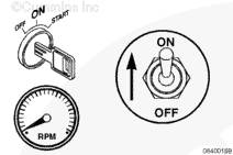 ”一般報(bào)警”繼電器輸出會(huì)關(guān)閉發(fā)動(dòng)機(jī)并且不允許其運(yùn)行,直到反復(fù)轉(zhuǎn)動(dòng)” STOP/RUN ”(停止/運(yùn)行)開(kāi)關(guān)。