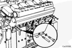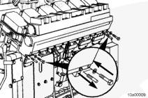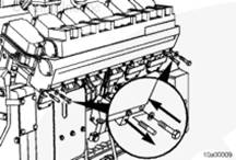 將密封墊安裝在左排中冷器供應(yīng)管和回水管的端部。安裝螺栓。扭矩值:  65  n.m  [48 ft-lb]