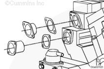 注: 安裝隔套或格柵加熱器時,使零件號朝向沖冷器并使箭頭指向缸蓋。