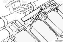 注: 可能需要適度轉(zhuǎn)動空氣跨接管適配器,以便和渦輪增壓器壓縮機(jī)的法蘭對準(zhǔn)。利用 6-mm 螺栓和適配器上的埋頭螺孔進(jìn)行轉(zhuǎn)動。