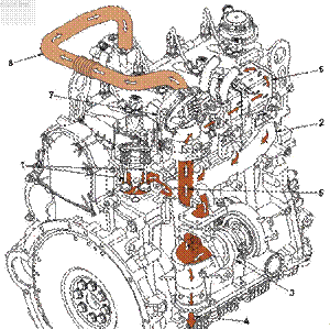 1、 排氣門(mén), 2、排氣歧管,3、渦輪增壓器,4、渦輪增壓器排氣出口,5、至 EGR 閥的廢氣,6、EGR 冷卻器,7、EGR 閥,8、EGR 跨接管,