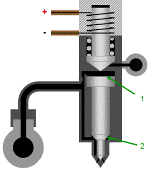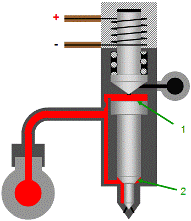 • 相同的燃油壓強(qiáng)施加在柱塞頂面 (1)和針閥凸臺區(qū)域 (2) 上