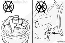 如果以下系統(tǒng)之間存在泄漏,冷卻系統(tǒng)和潤滑系統(tǒng)的工作壓力將使機油和冷卻液混合: 缸蓋密封墊、機油冷卻器等(參考第 7 節(jié)中的步驟 007-037。