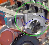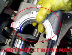 主軸承蓋裝反時,A處與B處干涉,無法裝配,安裝主軸承蓋要注意編號。