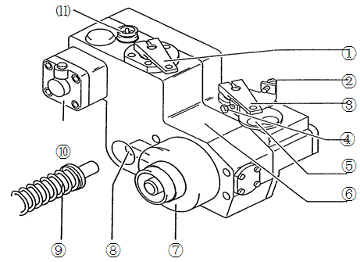 1.停車桿,2.高速限位螺釘,3.加速桿,4.怠速限位螺釘,5.滿負(fù)荷調(diào)速調(diào)整器,6.調(diào)速器殼體,7.調(diào)速器驅(qū)動(dòng)齒輪,8.齒條控制桿,9.齒條及彈簧,10.LDA,11.加濃電磁閥
