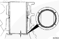 當(dāng)繼續(xù)使用缸套時(shí),將它們裝入與拆卸時(shí)相同的氣缸中,并從原來(lái)位置旋轉(zhuǎn) 45 度(1/8 圈)。安裝正確時(shí),缸套穴蝕的位置必須如圖所示,穴蝕面應(yīng)旋轉(zhuǎn)至遠(yuǎn)離發(fā)生穴蝕的位置。