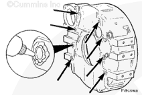 在飛輪殼體起動(dòng)馬達(dá)安裝法蘭上涂敷一條 1.5 至 2.0 mm [0.06 至 0.09 in] 寬的密封膠(零件號(hào) 3164067)。