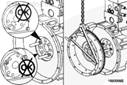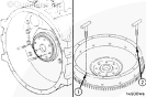 擰緊飛輪螺栓時(shí)使用盤車工具(零件號(hào) 3824591)固定曲軸。按星形方式擰緊螺栓。扭矩值: 137 n.m [101 ft-lb]
