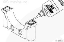 如圖所示,在每個康明斯ISX15 CM2250發(fā)動機主軸承蓋上的 2 個主軸承蓋表面涂上一層 U 形 Loctite™ 518 螺紋密封膠。