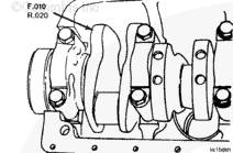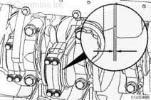 主軸承蓋上標記有“V”字樣。使“V”標記指向發(fā)動機的前面。定位不正確會導致發(fā)動機嚴重損壞。