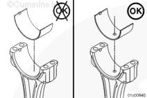 將康明斯ISX15 CM2250發(fā)動機上軸瓦裝入連桿中,軸瓦定位舌座入連桿上的槽中。
