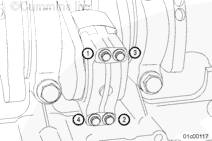 將康明斯ISX15 CM2250發(fā)動機主軸承蓋上的兩個螺釘擰緊到 203 N•m [150 ft-lb]。