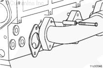 用兩根康明斯ISX15 CM2250發(fā)動機節(jié)溫器殼體蓋螺釘將節(jié)溫器殼體對正。
