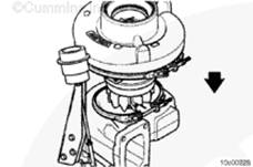 將康明斯ISX15 CM2250發(fā)動機軸承和壓縮機殼體總成小心滑入渦輪殼中。根據(jù)墨水校準標記,按照與渦輪殼正確的方向定位渦輪殼總成。
