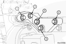注: 安裝搖臂室蓋前,確保加載剪式齒輪,并從發(fā)動機上拆下氣門凸輪軸正時楔和曲軸鎖定銷。 參考第 AS 節(jié)中的步驟 001-088。