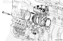 將康明斯ISX15 CM2250發(fā)動機空氣壓縮機安裝托架和四條螺釘裝到空氣壓縮機下面的缸體上。開始擰緊全部四條螺釘。