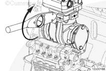 將康明斯ISX15 CM2250發(fā)動機空氣壓縮機、密封墊、安裝螺母和螺釘安裝到前齒輪室上。