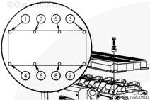 按圖示順序擰緊燃油泵支架和空氣壓縮機上的螺釘。