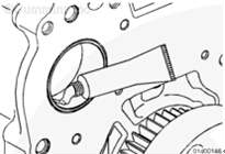 使用量規(guī)(零件號 3824564)和磁性底座(零件號 3377399),核實(shí)凸輪軸的側(cè)隙和軸向間隙正確。