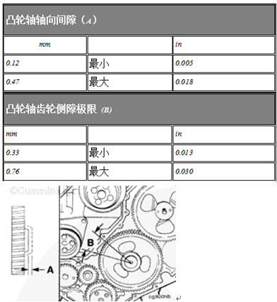 在康明斯B3.9、B4.5、B4.5 RGT 和 B5.9 發(fā)動機(jī)凸輪軸齒輪與曲軸齒輪嚙合之前,檢查凸輪軸是否容易旋轉(zhuǎn)。安裝正確時,凸輪軸必須旋轉(zhuǎn)自如。