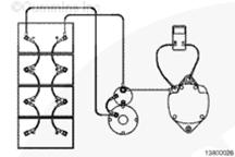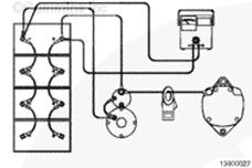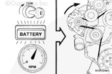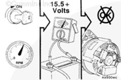 注: 充電機(jī)輸出電壓直接與正在運轉(zhuǎn)的充電機(jī)轉(zhuǎn)速有關(guān)。充電機(jī)傳動皮帶滑動可能會造成輸出讀數(shù)不正確。