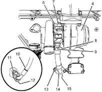 9將管組件(14)安裝到Perkins1106A/C發(fā)動機(jī)渦輪增壓器(4)上。安裝螺栓(9)并用手?jǐn)Q緊。