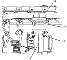 13.如有必要,將螺柱(17)從Perkins1106A/C發(fā)動機(jī)排氣歧管(16)上拆下。