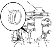 6擰緊螺栓(5)至扭矩為44N·m(32lbft)。
