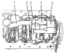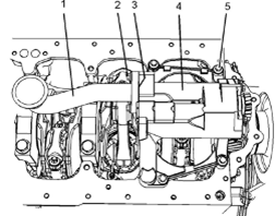 3卸下螺栓(5)。將Perkins1106A/C發(fā)動機(jī)機(jī)油泵組件(4)從Perkins1106A/C發(fā)動機(jī)缸體上卸下。