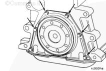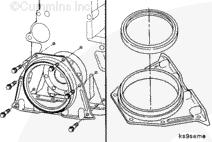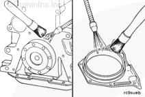曲軸后油封安裝在殼體上,該殼體通過螺栓安裝在缸體后部。使用雙層 Teflon™ 密封件。曲軸密封面必須清潔并且在安裝油封時(shí)沒有機(jī)油。