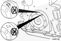 交替擰緊螺母并轉(zhuǎn)動(dòng)半圈,直到安裝工具接觸到曲軸端。