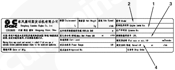 與 Cummins® 特約維修站聯(lián)系時(shí)應(yīng)當(dāng)提供下列發(fā)動(dòng)機(jī)數(shù)據(jù)。查找備件時(shí),必須提供銘牌上的下列信息:
