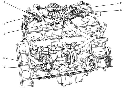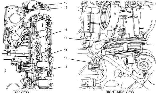 在右邊,一個典型的1206e-e66發(fā)動機頂部的傳感器位置
