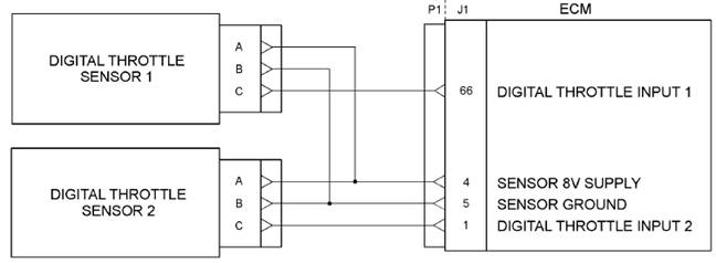 數(shù)字節(jié)氣門位置傳感器由+8VDC從ECM。電源電壓來自的j1:4終端”一個“數(shù)字油門位置傳感器連接器。