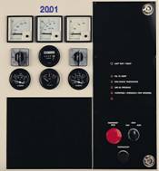 2001控制屏⑴ 儀表:電壓表、電流表、頻率/轉(zhuǎn)速表、運(yùn)行時(shí)間表、冷卻水溫表、潤滑油壓力表、電池電壓表。