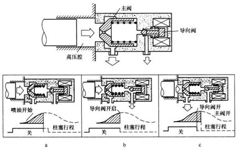 1-凸輪 2-柱塞 3-回位彈簧 4-高壓腔 5-電磁閥針閥 6-電磁閥閥腔 7-進(jìn)油通道 8-回油通道 9-線圈 10-低壓腔